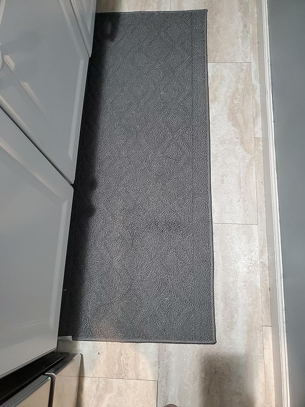 I was concerned that this rug would not look good in the kitchen. It seemed to be more suitable for a hallway. But it IS nice and quite comfortable. I also had a little concern about its ability to provide stability without slipping. It does move, but just a little. Shaking it out daily is very easy. So far I haven’t washed it but I have vacuumed it and it’s in nice condition.