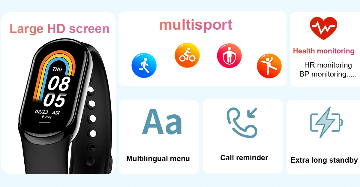 Specification: For xiaomi Smart Band 8 GEJIAN Smart Band M 8 Men Women Smartband Heart Rate Smartwatch Fitness Tracker Blood Pressure Sport