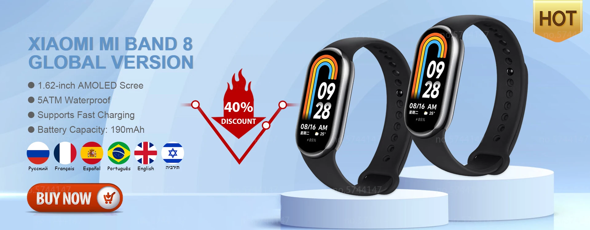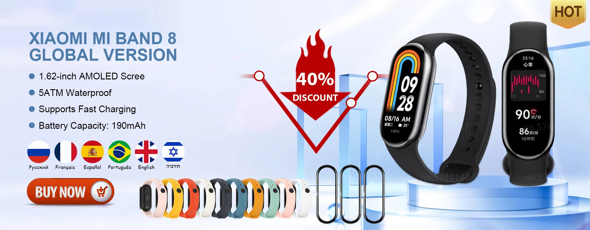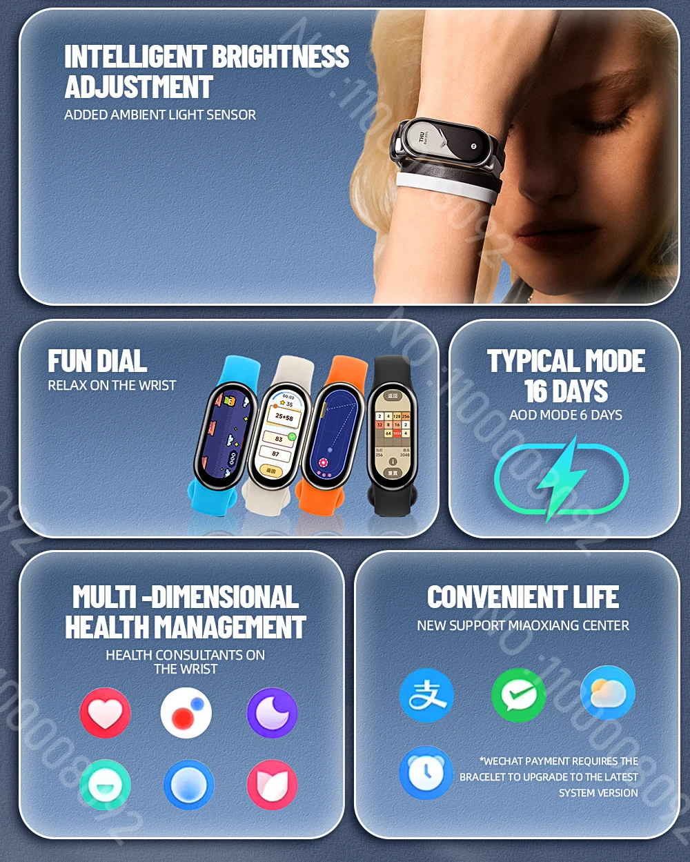 Xiaomi Mi Band 8 Global Version Smart Bracelet 8 1.62 AMOLED Screen Miband8 Blood Oxygen Fitness Traker Waterproof Smart Sensors