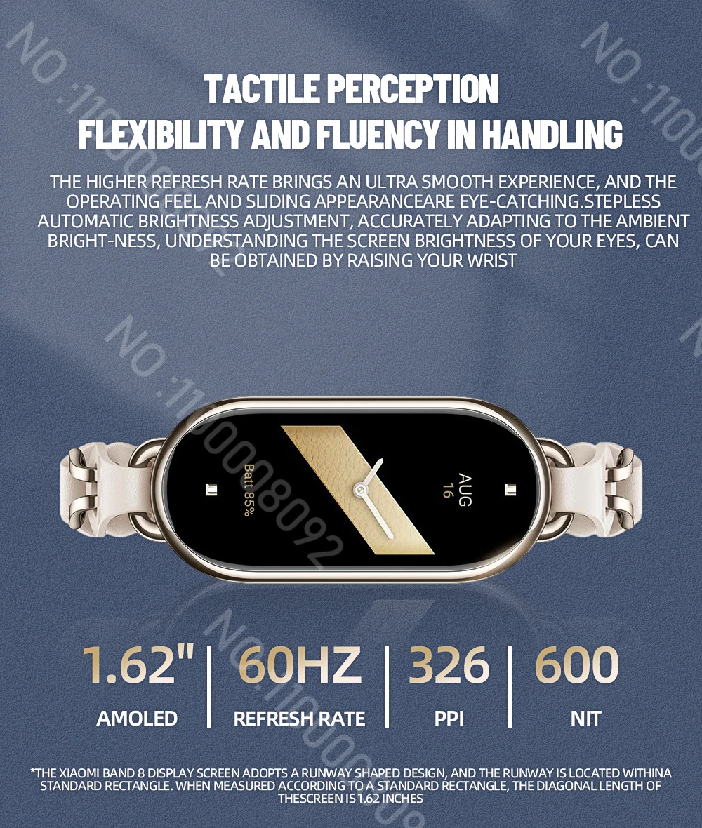 Specification: Xiaomi Mi Band 8 Global Version Smart Bracelet 8 1.62 AMOLED Screen Miband8 Blood Oxygen Fitness Traker Waterproof Smart Sensors